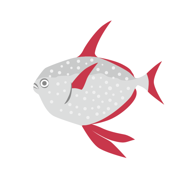 アカマンボウはマンボウに似た円盤状の大型魚で、銀色の体に赤い鰭と斑点が特徴的な魚。胸鰭は水平に長く伸び鮮やかな外見をしている。味はマグロに似ていると言われている。